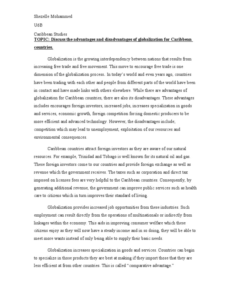 The advantages and disadvantages of globalization Introduction. Every possible aspect of Caribbean life so that it is almost impossible to imagine life without them. Globalisation and Cultural Identity in Caribbean Society.
