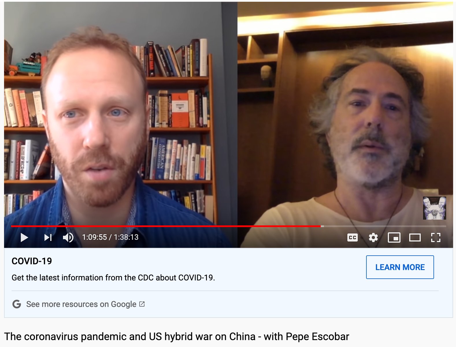 Alexander Reid Ross On Twitter Here S A Screenshot From The Epic 90 Minute Intv The Coronavirus Pandemic And Us Hybrid War On China With Pepe Escobar On Asia Times Escobar Had Cited