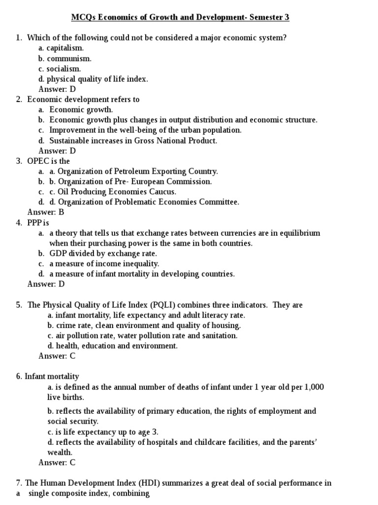 Mcq Economics Of Growth And Development Correct Pdf Economic Development Economics