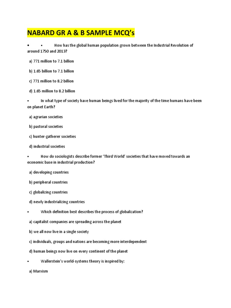 Mcq Globalization World Systems Theory