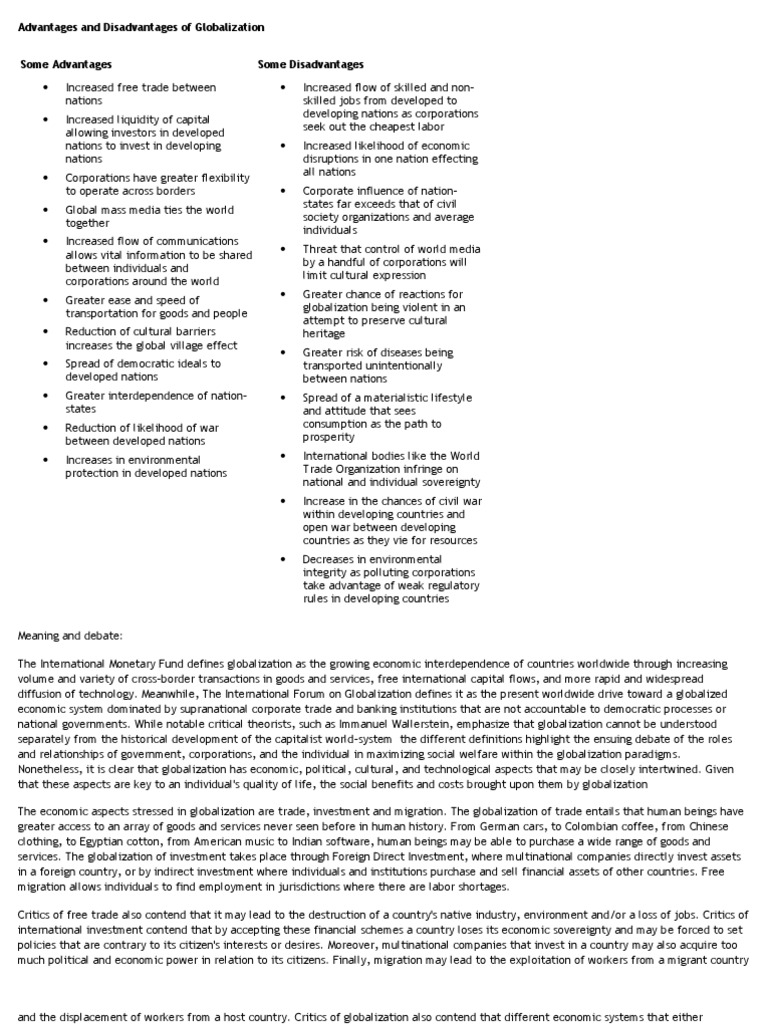 Pros And Cons Of Globalization Free