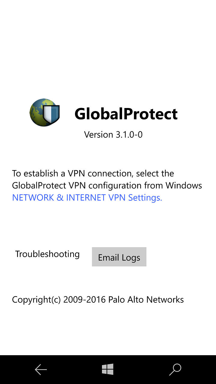 Installation Get this app while signed in to your Microsoft account and install on up to ten Windows 10 devices. GlobalProtect for Windows Unified Platform connects to a GlobalProtect gateway on a Palo Alto Networks next-generation firewall allowing mobile users to benefit from the protection of enterprise security. If you have the Cisco AnyConnect VPN client installed please uninstall it before installing the GlobalProtect VPN.