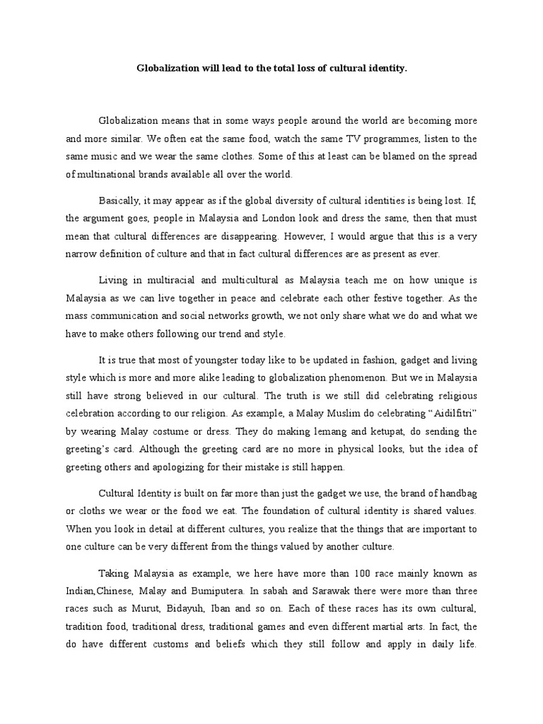 Globalization Will Lead To The Total Loss Of Cultural Identity Malaysia Multiculturalism