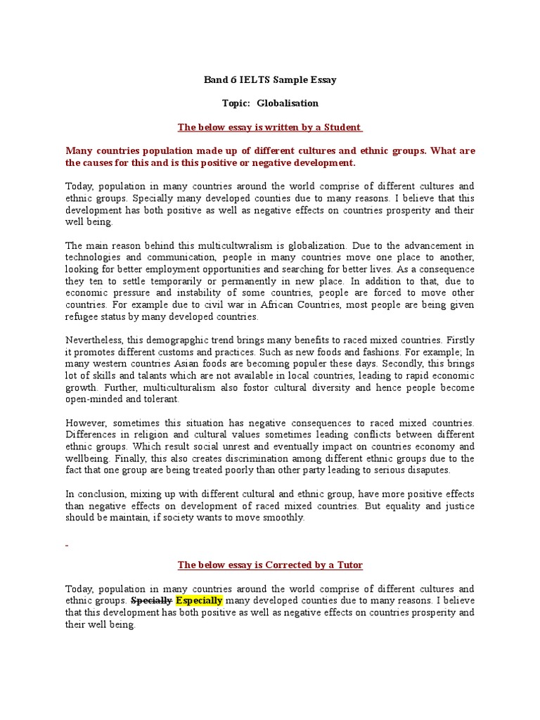 Band 6 Ielts Sample Essay Multiculturalism Globalization